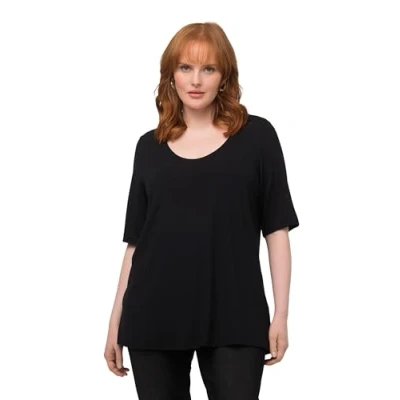 Ulla Popken Women's T Shirt, Front Double Layer, V Neck, Half Sleeves, Black, 24 26