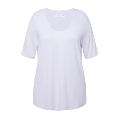Ulla Popken Women's T Shirt, Front Double Layer, V Neck, Half Sleeves, Snow White, 16 18