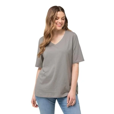 Ulla Popken Women's T Shirt, nubs, V Neck, Half Sleeves, 815644, Black, 20 UK/22 UK