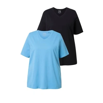 Ulla Popken Women's T Shirts, 2er Pack, V Ausschnitt, Halbarm, Biobaumwolle, Sky Blue, 20 UK/22 UK