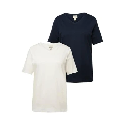 Ulla Popken Women's T Shirts, Pack of 2, V Neck, Half Sleeves, Organic Cotton, Navy, 20 22