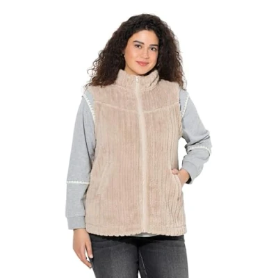 Ulla Popken Women's Teddyweste Vests, Dark Putty, 28 UK/30 UK