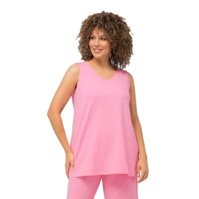 Ulla Popken Women's Top, A line, V Neck, Sleeveless, 807291 T Shirt, Light Pink, 16 UK/18 UK