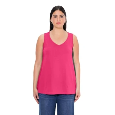 Ulla Popken Women's Top, V Ausschnitt, Classic, Ärmellos T Shirts, Magenta Pink, 20 UK/22 UK