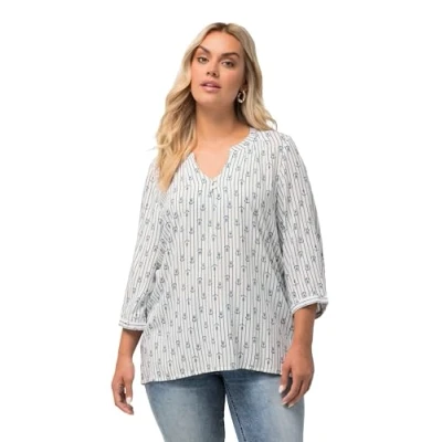 Ulla Popken Women's Tunika mit Knopfleiste und Druck Blouses, White, 20 UK/22 UK