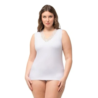 Ulla Popken Women's Undershirt, Bamboo lace Vests, Snow White, 16 UK/18 UK