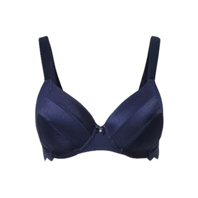 Ulla Popken Women's Wire Bra, Soft Cup, Satin and lace 830417, Semi Transparent inches, Midnight Blue, 42D