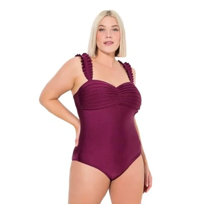 Ulla Popken Women's Badeanzug Gelegte Falten Shiny One Piece Swimsuit, Purple, 26