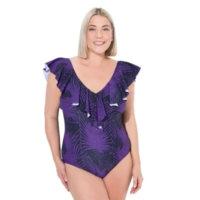 Ulla Popken Women's Badeanzug Petra, Volants, Mamba One Piece Swimsuit, Purple, 20