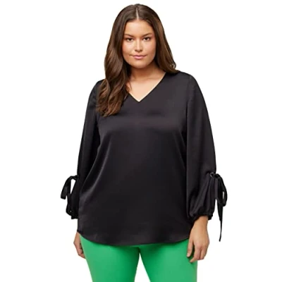 Ulla Popken Women's Balloon Sleeve Blouse, Schwarz, 28 30