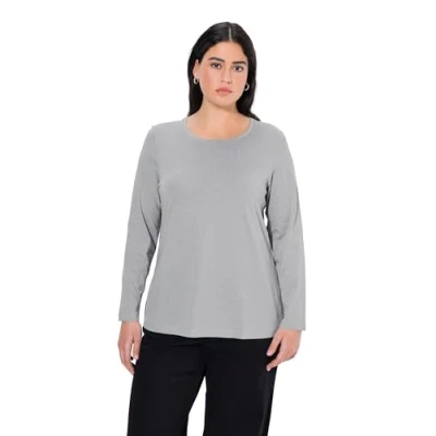 Ulla Popken Women's Basic Shirt, Rundhalsausschnitt, Slim, Baumwolle Longsleeve T, Grey (11), 16 18