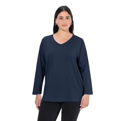 Ulla Popken Women's Basic V Shirt, Long Sleeves Longsleeve T, Blue Black, 28 30
