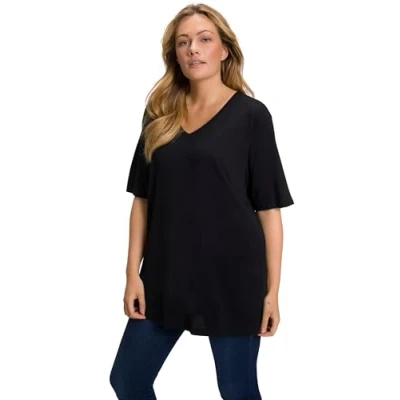 Ulla Popken Women's Basic V Shirt T Shirt, Black, 40/42 UK