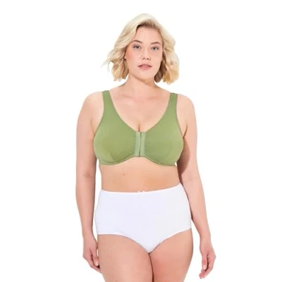 Ulla Popken Women's Bustier, Vorderverschluss, C/D, E/F Cup Bra, Moss Green, 52 D