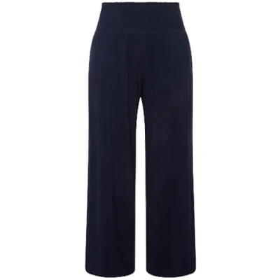 Wide, straight leg Extra wide elastic waistband Soft viscose jersey Elastic and dimensionally stable thanks to elastane content Inseam length: approx. 30"