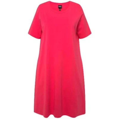 Ulla Popken, Womens Plus Size Jersey Dress A Line Round Neck Half Sleeve Pockets, red, 20 22