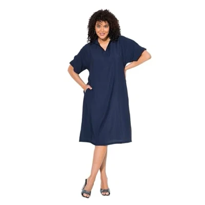 Ulla Popken Women's Polokleid mit Schlitz Am Ärmel Polo Dress with Slit on The Sleeve, Navy, 32/34