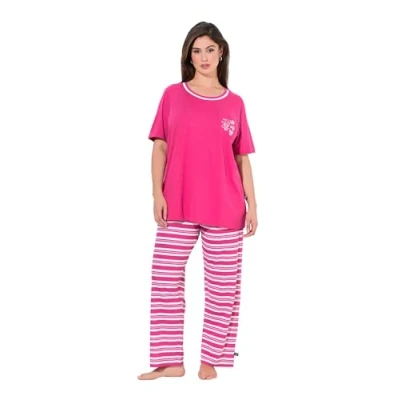 Ulla Popken Women's Pyjama, Stripe Fusion Pajamas, Pink, 42 44