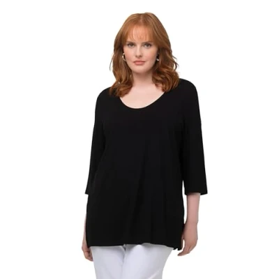 Ulla Popken Women's Shirt 3/4 Sleeves T, Black, 20 22