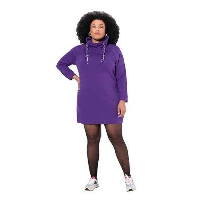 Ulla Popken Women's Sweatkleid, Stehkragen, Langarm, Taschen Dress, Deep Purple, 22 UK/24 UK