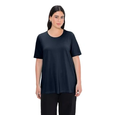Ulla Popken Women's T Shirt, A Linie, Rundhalsausschnitt, Halbarm, Navy, 24 26