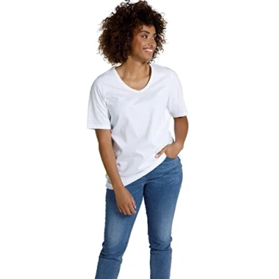 Ulla Popken Women's T Shirts, Pack of 2, V Neck, Half Sleeves, Organic Cotton, Black, 24 26