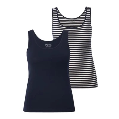 Ulla Popken Women's Tanktops, 2er Pack, Rundhals, Ärmellos, Biobaumwolle T Shirt, Navy, 20 UK/22 UK
