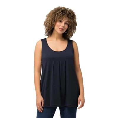 Ulla Popken Women's Top, Pleats, A line, Round Neck, Sleeveless, Modal T...