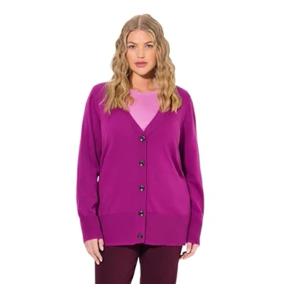 Ulla Popken Women's V Neck Button Down Fine Knit Jumper, Berry, 24 26'