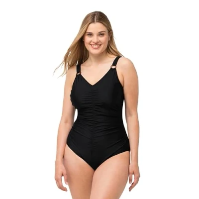Ulla Popken Women's Wiebke Swimsuit with Front Opening One Piece, Black, 24