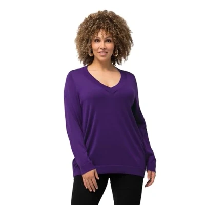 Ulla Popken Womenswear Plus Size Curvy Casual V Neck Long Sleeve Sweater deep Violet 54+ 791606840