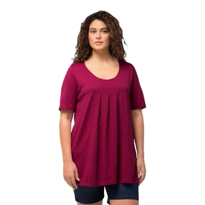 Ulla Popken Womenswear Plus Size Curvy Essential Front Pleat Tee Magnolia red 58+ 796473820