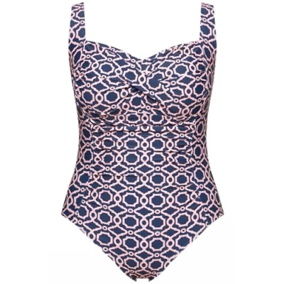 Ulla Popken Womenswear Plus Size Curvy Geometric One Piece Swimsuit Marine 32 832265740 58