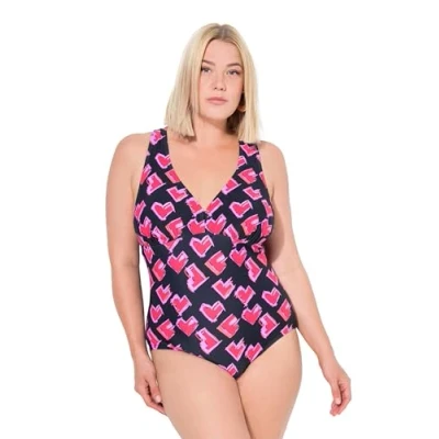 Ulla Popken Womenswear Plus Size Curvy Heart Print Macrame Strap One Piece Swimsuit Black 20 835850100 46