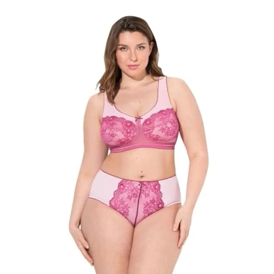 Ulla Popken Womenswear Plus Size Curvy Lace Panel Relief Bra Fuchsia 105C 819614817