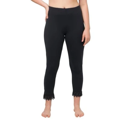 Ulla Popken Womenswear Plus Size Curvy Oversize Eco Cotton Elastic Waist Lace Trim Leggings Black 54+ 747979100