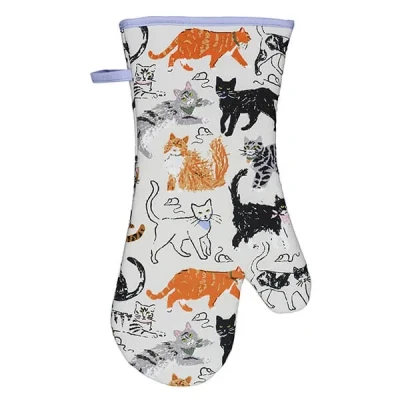 Watercolour and ink cats mingle with expressive oil pastel kitties for a purr-fect graphic aesthetic on this Ulster Weavers Feline Friends Gauntlet. This collage of cats adorned gauntlet from Ulster Weavers is ideal for handling hot pots and pans, as well as piping hot dishes straight out of the oven. This single oven glove provides protection for one hand, extending further up the arm than a double oven glove, ensuring you don't get burnt when cooking up a storm in the kitchen.Made from 100% cotton, this stylish gauntlet features a 100% polyester wadding filling. Machine washable at 40°C.Part of the Feline Friends collection from Ulster Weavers. Each cat in this design is depicted in a different illustrative style resulting in a rich collage feel. Outlined mice sneak playfully around the cats bringing the whole design together whilst primary tones add an energy to the basic greys and browns.