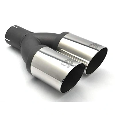 Ulter Sport Exhaust finisher Double Round Ø90mm Slanted Length 290mm Installation >50mm Inox