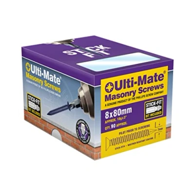Patented Stick-Fit Drive System for smooth, stable driving and one-handed installation Stick-Fit driver bit included in every box Fix items to masonry, brickwork, breeze blocks etc without the need for wall plugs Simply pre-drill a 7mm pilot hole and insert the screws (7mm drill bit not included) Weather resistant coating for outdoor use Dual Hi-Lo thread for strong holding power Diamond Point for effective dust clearance during insertion, Weight: 0.03968320716 pounds, Manufacturer: Phillips Screw Company