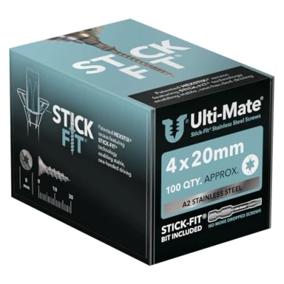 Patented HEXSTIX drive system enables smooth, stable driving and one-handed installation. Use your free hand to easily position the item being fixed. Free Stick-Fit driver bit in every box Wax lubricant coated for low-torque insertion Ideal for outdoor and marine applications - even in coastal areas. Double angle self countersinking head for a neat finish Type-17 'slash' point to drive through the toughest timbers Screws 100% compatible with standard Torx driver bits