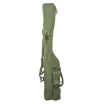 The Ultimate Adventure Rod Holdall 2 Rod is a versatile and durable holdall for safely transporting two rigged rods. Made of sturdy 600D material, it offers a hard-wearing and waterproof bottom, with velcro straps to keep the rod parts securely in place. This holdall features an external pocket for a landing net handle and umbrella, two additional storage pockets for accessories, and an adjustable double carry strap with comfortable pads. Thanks to high-quality zippers with oversized pullers, this rod holdall is not only practical, but also extremely user-friendly. Available in different lengths to perfectly fit your fishing equipment.