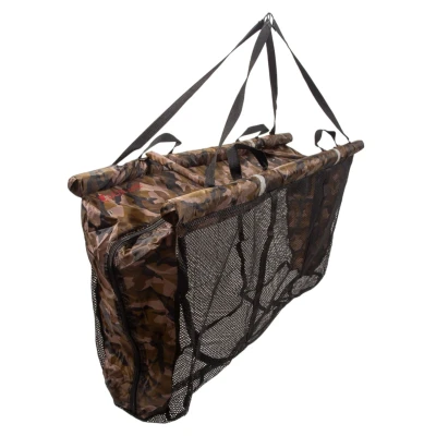 Ultimate Bionic Floatation Sling Camo - Floating weighing bag/retaining sling - Dimensions: 120 × 35 × 60cm - Material: PVC, mesh - Double zipper closure and locking clip - Full-length mesh float with high buoyancy - Fish-friendly mesh along the entire bottom - Four carrying handles to transport larger carp - Equipped with two removable stabilizer bars - Illuminated strips for night vision - Can be easily attached to the bank - Supplied with two meter long rope and bank stick adapter - Includes carrying bag with drawstring The Ultimate Bionic Floatation Sling Camo uses a full-length net float to ensure that the system always floats on the water, even in tough conditions. The sling has a double zipper and locking clip so carp have no chance to escape. And a 2-meter rope and bank stick adapter allows for easy attachment of the system to the bank. For ease of use and access, 2 removable stabilizer bars are included that keep the system open at all times. The fish-friendly mesh running along the bottom of the system allows for quick drainage of water. The four carrying handles provide a secure way to transport larger carp, and lighted strips have been added to facilitate nighttime catches. Comes with a carry bag with drawstring.