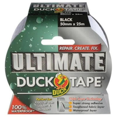 General description The Shurtape Duck Tape Ultimate is a versatile and heavy-duty cloth tape designed for a wide range of applications. With its unique triple-layered construction, this tape is perfect for both regular and extreme uses, making it an essential tool for any DIY enthusiast. Technical specifications Width: 50mm (2 in) Length: 25m Color: Black Adhesive strength: 50% stronger than most other cloth tapes Usage Ideal for temporary repairs on bikes Can secure broken car bumpers until professional repairs are made Suitable for both indoor and outdoor use 100% waterproof, but not suitable for total immersion in water