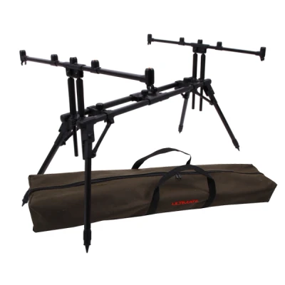 This Sky Chaser Rod Pod from Ultimate in classic style is perfect for the modern carp angler. The Sky Chaser is suitable for fishing with 3 or 4 rods and is fully adjustable in both length and height. You can adapt your rod pod to any type of surface or any cutting. The legs are independently adjustable in length and angle and ensure that the rod pod always stands firm. Thanks to the telescopic central supports with locks, the total length can be adjusted to the length of the rods. The Sky Chaser comes complete with carrying bag.