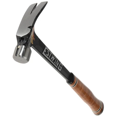 General description Estwing Ultra Series Framing Hammers are solid forged in one piece of steel, providing excellent strength and durability. They are engineered to be lighter, allowing for faster nail driving. The hammers feature an extra nail notch built into the head and a magnetic nail starter for added convenience. The traditional leather handle grip is made from leather washers that are pressed on and riveted, ensuring a comfortable and secure hold. Made in the USA from high-quality steel. Technical specifications Weight: 540g (19oz) Handle length: 349mm (15.5in)