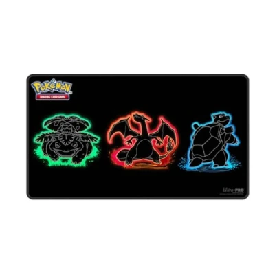 On the neon kanto foil playmat venusaur, charizard and Blastoise share the spotlight. Features a soft fabric top with spot foil accents. A non-slip rubber backing keeps the playmat in place. Measures 24 in. x 13.5 in. and lies flat. Ultra pro brings a bright and bold Pokemon TCG accessory line., Manufacturer: Ultra Pro