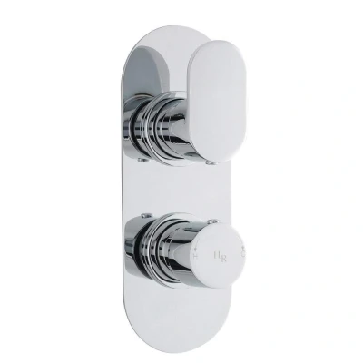 Hudson Reed's twin valve with diverter is elegant and versatile, allowing for vertical or horizontal fitting. It offers strict flow and thermostatic control, ensuring thermal protection to prevent scalding if water supply fails. The valve is reversible, making installation easy. Made from high-quality brass and durable ABS plastic, it features a patented cartridge resistant to calcium build-up, ideal for hard water areas. This valve works with gravity-fed, pumped, unvented high-pressure, or fully modulated combi-boiler systems, providing excellent flow rates even at low pressure. Thermostatic control maintains temperature within /- 2 to 3C despite pressure fluctuations. It shuts down to prevent scalding during hot or cold water failures. The product has a 20-year guarantee against faults (excluding serviceable parts) if installed and used as per instructions. Hudson Reed bathroom collections include luxurious ceramics and furniture, suitable for both private and commercial settings.. Hudson Reed 80 x 215mm Chrome Round Twin Valve with Diverter