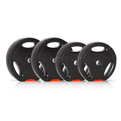 ULTRASPORT WEIGHT PLATES: The 4 Ultrasport weight plates are equipped with a standard 30 mm hole and are compatible with standardized dumbbells and barbell bars - suitable for beginners to professionals MUSCLE STRENGTHENING: Effective strength training is possible with the weight plates: weightlifting, bodybuilding, powerlifting and everything that specifically builds up and strengthens the muscles in the legs and upper body COMFORTABLE HANDLING: Each weight plate can be used for free weight training: three grooved finger grips ensure comfortable handling - the set includes 2x 2.5 kg, 2x 5 kg weight plates ROBUST AND DURABLE WEIGHT PLATES: The weight is optimally distributed as the robust plastic coating contains highly compacted cement - the weight plates are therefore robust, durable, quiet and gentle on the floor EASY TO STORE: The flattened sides (marked in red) are suitable for convenient storage of the weight plates by standing them upright, allowing the dumbbells to be stowed away narrowly when not in use