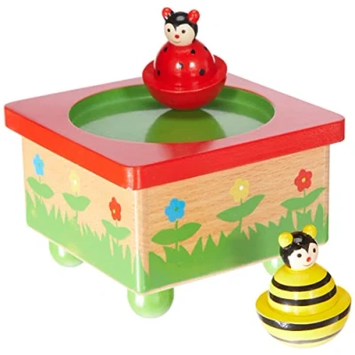 This delightful music box has two magnetic dancing bugs on top, one ladybug and one Bee. This wind up music box plays the tune Tulips from Amsterdam A bright and colourful painted wooden music box The perfect gift Your child will love being able to set this wonderful ladybug and Bee music box in motion,