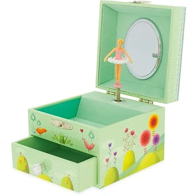 Keep all those precious bits safe in this pretty colourful box. An ideal first jewelery box for any young princess. The Ideal Gift Watch the ballerina dance to thre tune Blue bird of happiness This wonderful music box has a clasp seal top and small draw at the bottom, Manufacturer: Ulysse